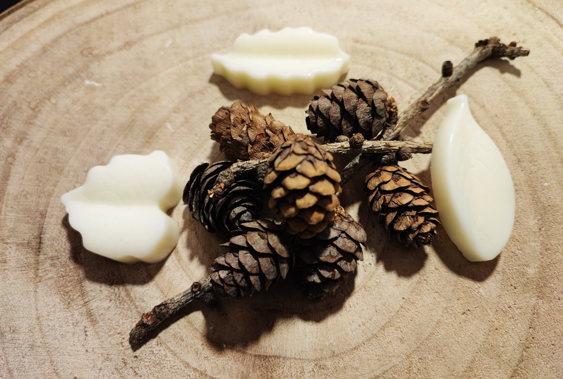 Le foglie sono disponibili nella fragranza natalizia: arancio, menta piperita, pino cembro, cannella, chiodi di garofano e anice stellato.